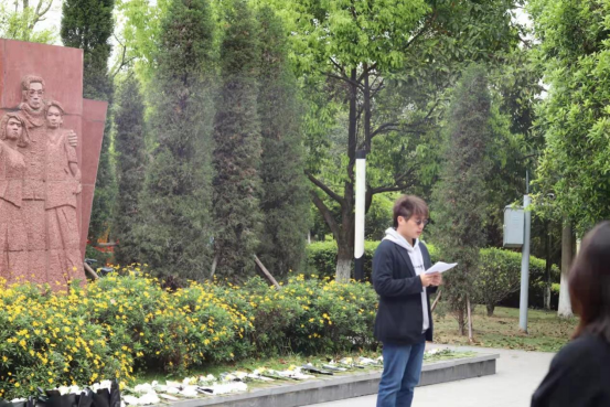 “松柏挺立,丰碑永存,革命精神,薪火相传。”博士支部入党积极分子郭文静和胡天鹏同学表达了对革命先烈的追思。他们表示,作为新时代的建设者,我们一定传承和发扬革命先辈的奋斗精神,牢记历史,双肩担使命,心头记责任,刻苦钻研,为新世纪祖国建设贡献力量。