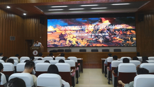 讲座伊始,陈默老师风趣幽默地进行自我介绍并与在座师生亲切互动。他从主题“抗日敌后战场的斗争”切入,从三个敌后战场的形成、敌后战场的斗争、局部反攻和全面反攻三个方面,为大家细致讲解了抗日敌后战场的形成和根据地的建立。