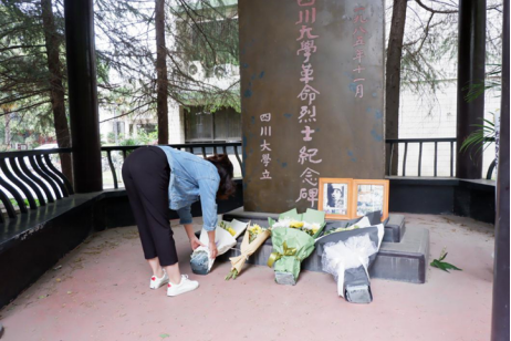祭扫结束后,全体成员瞻仰了烈士纪念碑,驻足停留,认真观看。由党支部书记李雪梅老师为大家讲述以江姐为代表的川大革命先烈的伟大功绩,并带领大家去熟记每一位为革命事业抛洒热血的川大革命先驱的姓名;并指出作为历史专业的学生应该以此为契机重温党史、校史,结合我们前两周的观影和考察活动,更能体会我们新时代的来之不易,增强 “四个自信”。大家纷纷表示这次祭扫活动使自己重新进行了一次党的历史、革命传统和爱国主义教育的全面洗礼,让我们更清楚地认识到有国才有家,更珍惜革命先烈们用热血换来的今天,要将革命传统牢记心间,砥砺前进!