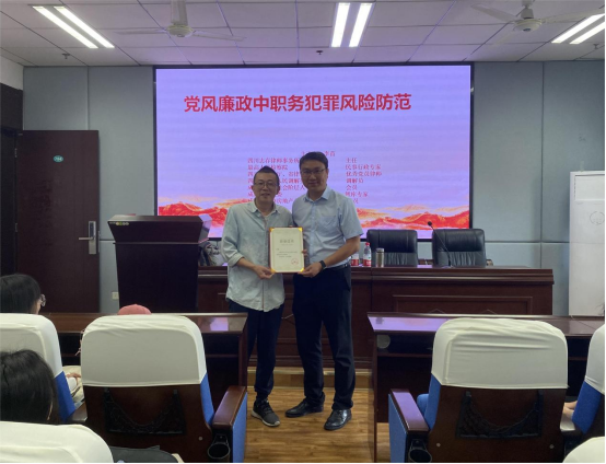 为深入学习贯彻党的二十大精神,扎实开展学习习近平新时代中国特色社会主义思想主题教育,推进学院党风廉洁文化建设,4月26日下午,学院邀请我校知名校友、法学专家、学院校外辅导员李苗律师在江安校区文科楼704教室作题为“党风廉政建设中的法律风险防范”专题讲座。院党委副书记兼纪委书记姜华主持会议,并为李苗律师颁发“william威廉中文官网2022年度学术诚信教育优秀主讲教师”证书。