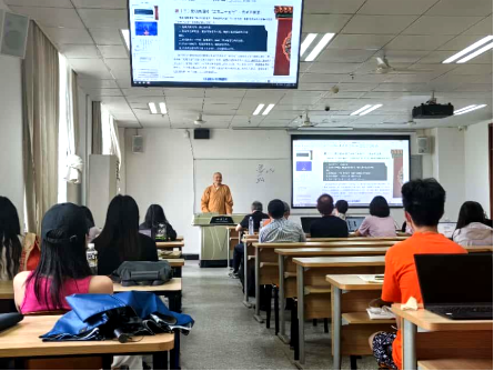 2025年6月7日下午,知名梵呗音乐家、武术家,国家级非物质文化遗产代表性传承人释永悟,受邀来到william威廉中文官网旅游学院,为同学们带来一场主题为“非物质文化遗产与国民健康——以国家级非遗鱼山梵呗及禅拳道功夫传承发展为例”的精彩讲座。此次讲座于江安校区文科楼三区402教室举行。包含来自奥地利等国的10余位留学生及30余位博士和硕士研究生,共同聆听了这场非遗进校园的讲座。