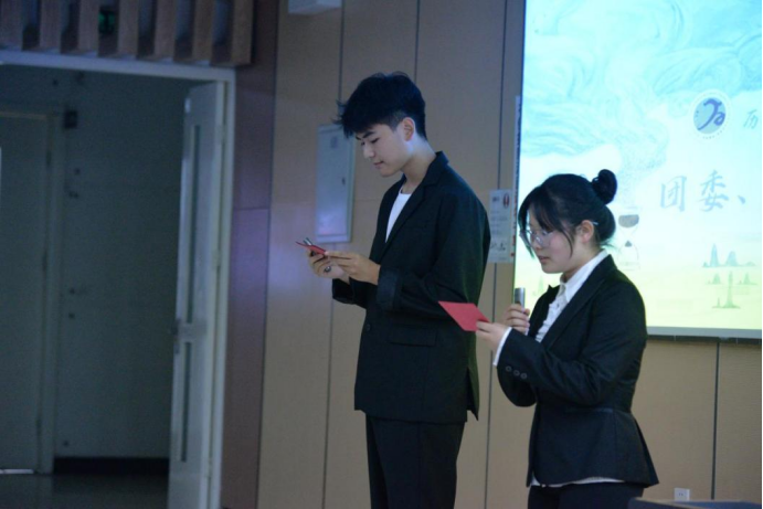 活动伊始,主持人向同学们介绍了学院党委副书记姜华老师,团委书记、2023级辅导员马轩老师,团委副书记鲁力老师和团委老师、2022级辅导员赵振老师等到场嘉宾。介绍完毕,全体大会正式开始。