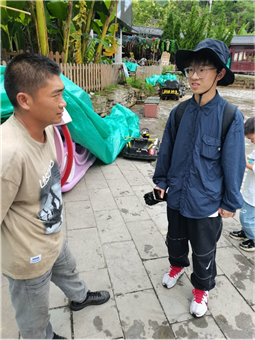 在杨香连书记的介绍下,实践队成员找到了最早一批返回化屋村支援家乡建设的村民代表杨国安。杨国安告诉实践队,他是2009年返回化屋村的,当时的化屋村基础设施建设较为落后。村民大多外出务工,留守儿童和空巢老人占据了全村人口的大多数。当时,他和同一批返乡的几个朋友一起用自家房子改成农家乐和民宿,摸索发展旅游的方法,随着自身收入的增加,他也开始尝试带动乡邻一起从事旅游经营,一起致富。作为化屋村游客接待中心的负责人,杨国安说自己身上的担子依然很重,好在目前有党和国家的支持,虽然经历了新冠疫情的冲击,化屋村的旅游业仍然在不断地发展,他对未来目前也是充满信心和希望。