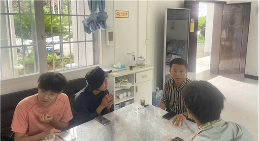 (图为游客接待中心负责人杨国安在向实践队讲述返乡支援过程中遇到的困难)