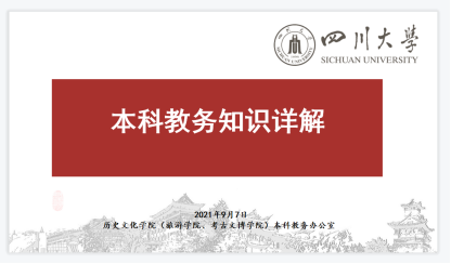 2021年9月10下午14:00分专业在江安校区综合楼C座103和105分别举办新生主题讲座分别为2021级历史大类和旅游管理类新生解答他们对于大学学习、专业前景以及阅读等方面的问题,使其尽快熟悉大学生活,增加对于本学院以及专业的了解,开拓同学们的思维。