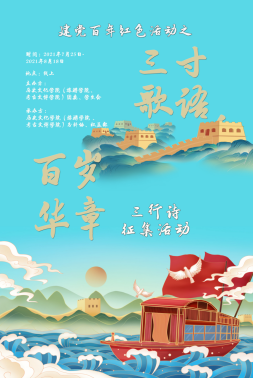 时值中国共产党建党一百周年,为促进党的历史与精神在大学校园里传播弘扬、坚定当代青年理想信念、筑牢巩固党在青年中的群众基础,7月25日至8月18日,williamhill英国官网(旅游学院、考古文博学院)分科协、权益部联合举办了建党百年红色活动之“三寸歌语,百岁华章”三行诗征集活动。