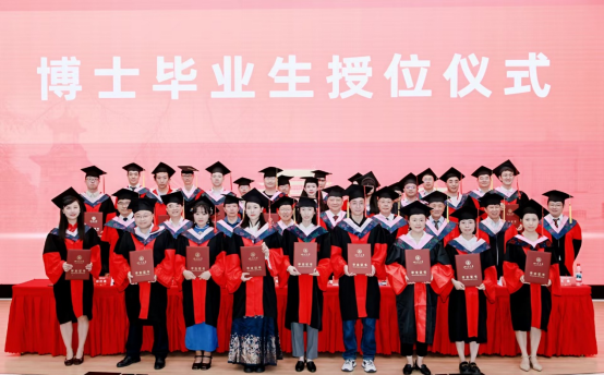 学院院长吕红亮宣读授位决定。主席台前排就座的院领导及教授为2025届本科毕业生、硕士毕业生、博士毕业生授位,并颁发证书。