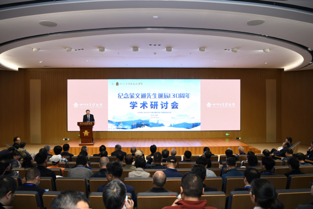 甘霖在致辞中代表学校对出席会议的专家学者和蒙文通先生亲属代表表示欢迎。他表示,蒙文通先生留给我们的经典名篇名著和学术成果,不仅是川大中国史学研究的宝贵财富,也为我国相关学科学术研究提供了珍贵的思想资源和方法论。我们纪念先生,就是要学习先生儒者豪迈、刚正不阿的为人品格,学习先生乐教爱生、因材施教的为师之道,学习先生潜心治学、开拓创新的为学精神,继承和发扬以蒙文通先生为代表的“大先生”的学术思想、育人智慧、躬耕态度、弘道追求,落实立德树人根本任务,推动学校哲学社会科学繁荣发展,传承创新中华优秀传统文化,为构建中国哲学社会科学自主知识体系、建设中华民族现代文明作出新的贡献。