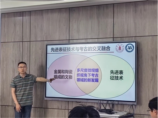 机械工程学院彭华备副教授的发言题目为“面向金属和陶瓷的先进表征技术”。他首先简要介绍了材料发展史及其与社会发展的关系。随后分别介绍了EBSD、ECCI、FIB、球差校正透射电子显微电镜的测试原理、应用场景、制样方法、分析优势等内容。在与考古学的结合方面,主要落脚于采用先进的表征技术对金属和陶瓷文物进行分析,从多尺度微观组织视角下获取新的考古发现。现场学者对最新技术在考古学科的应用开展了讨论。