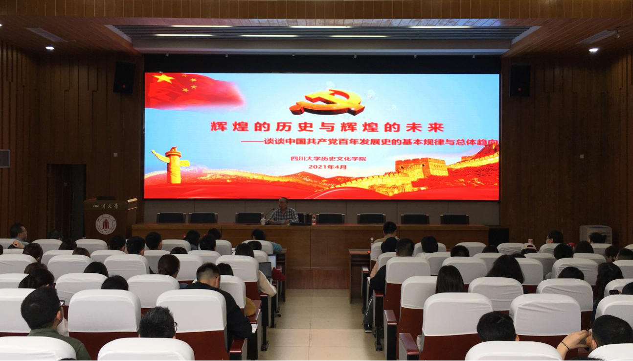 最后,陈廷湘教授以革命先驱的英雄事迹切入,深入浅出地分析了中国共产党百年发展史的总体趋向,阐明了历史选择中国共产党、选择中国共产党领导的共产主义社会改造运动的历史必然性,展望了在中国共产党的带领下,中华民族实现伟大复兴的美好未来。