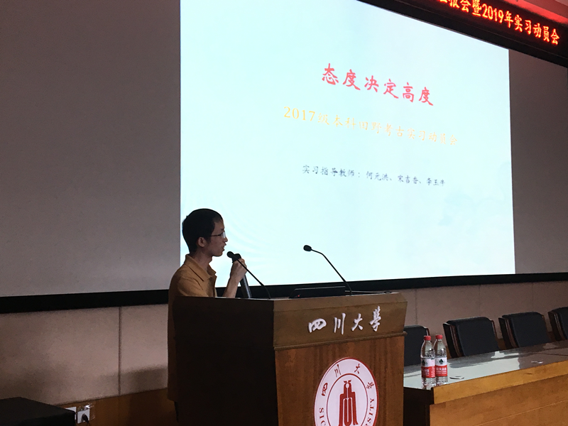 会议的第二个阶段是实习动员会。考古、文博专业三支实习队的带队教师及多位老师在实习即将开始之时为同学们动员鼓劲。2019年度海门口遗址考古实习队带队教师何元洪强调,态度决定高度,实习过程中要有责任心,讲究纪律,注意安全,责任心不仅指对遗址、遗迹、造物的发掘记录和整理,更多的也是对william威廉中文官网名誉的责任心。