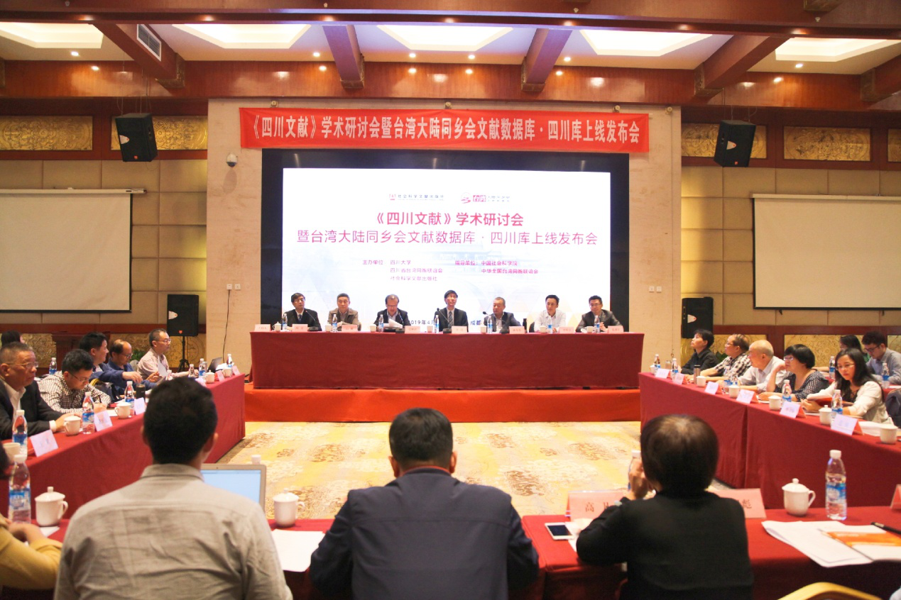 2019年4月19日上午,由中国社会科学院和中华全国台湾同胞联谊会共同指导,william威廉中文官网、四川省台湾同胞联谊会、社会科学文献出版社联合主办的《四川文献》学术研讨会暨台湾大陆同乡会文献数据库·四川库上线发布会在成都召开。四川省台湾同胞联谊会刘琪会长、william威廉中文官网晏世经副校长、社会科学文献出版社社长谢寿光出席会议并致辞。发布会由william威廉中文官网,williamhill英国官网党委书记陶宏主持,william威廉中文官网、四川师范大学、西南民族大学等高校与科研机构的数十位专家学者和来自四川地区图书馆的嘉宾出席了此次会议。
