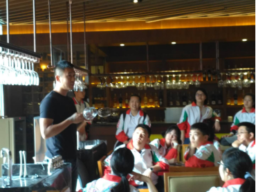 周宁老师为参观的同学们讲解了品酒的基本常识,从基本的水晶杯与玻璃杯的辨认到闻香、观察酒色;从红酒的历史发展到而今市面上红酒的类别,激发同学们对旅游管理专业的兴趣。