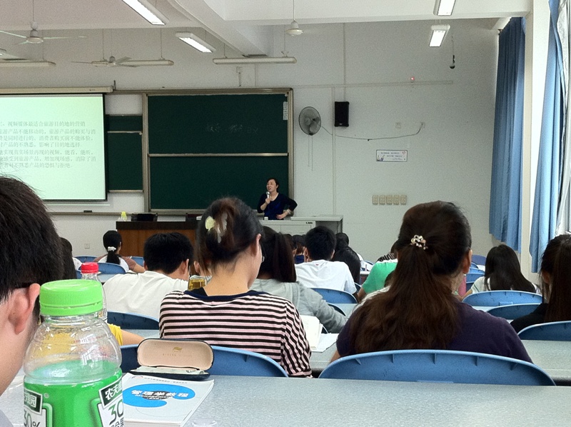 首先黄教授以当下网络红人一夜蹿红的现象作为切入点,在引起学生兴趣的同时指出网络媒体以其时效性强、容量无限大和互动性强等优势越来越受到人们的关注,越来越深刻地影响人们的生活。尔后给同学简单阐释了视频与娱乐和社会的关系,并指出传播已从最初的文字发展到图文,现在已经进入了视频时代,视频的娱乐功能及轻松搞笑的内容与形式必将成为未来营销的主流方式。最后,在互动环节黄教授提出“产生轰动效果的旅游视频并不多,原因何在呢?”同学们开动思维,积极发表自己见解。