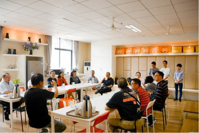 志愿者同学在江安东门接到老校友后,带领他们回到文科楼5楼休息室小憩。老校友们在江安设施完备、环境舒适的休息室里,谈天说地,忆往昔峥嵘岁月,讲述着当年的传奇故事。三星堆文化遗址发掘等经历让正值青春向往未来的志愿者同学们拍手称绝。